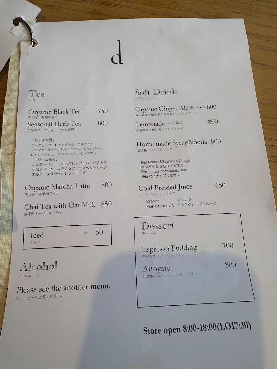 dews cafe kyoto Menu